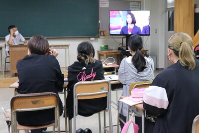 本日は、視聴覚教室で主権者教育が行われました。若者の政治的リテラシーや政治参加意識を育む必要があるため、様々な資料やクイズを解きながら楽しく学習する時間となりました。投票への関心を高めた生徒が多く見られました!