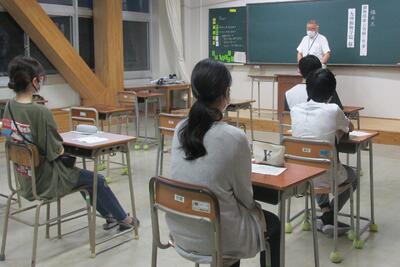 事前指導の説明を聴く生徒たち