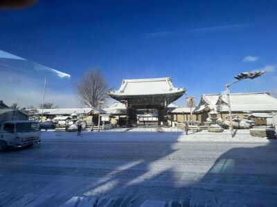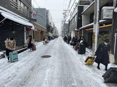 朝食後、綿善旅館の方々にご挨拶をし、バスまで雪道を移動しました。