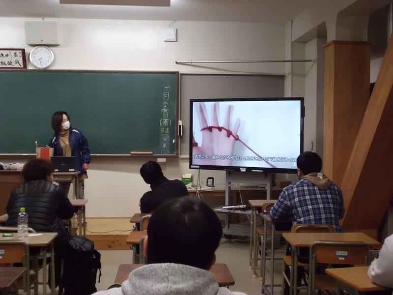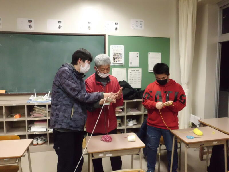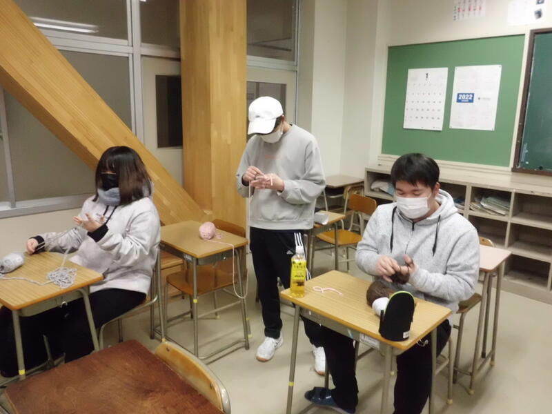 本日は、3限目と4限目に班別活動が行われました。クリエイティブ班は、紙粘土で制作する干支のデザインを考案しました。また、ヘルシー・エコロジー班は、毛糸を用いた指編みでエコたわし作りを行いました。生徒も先生方も互いにアイデアを出し合いながら活動していました!