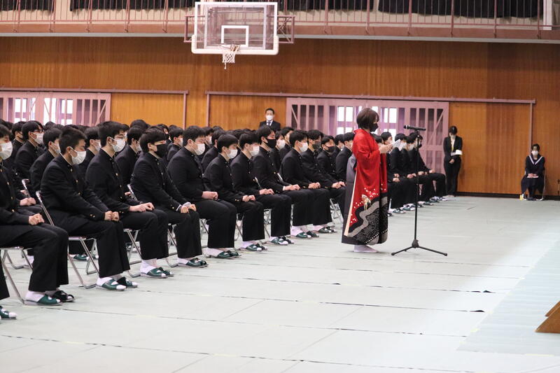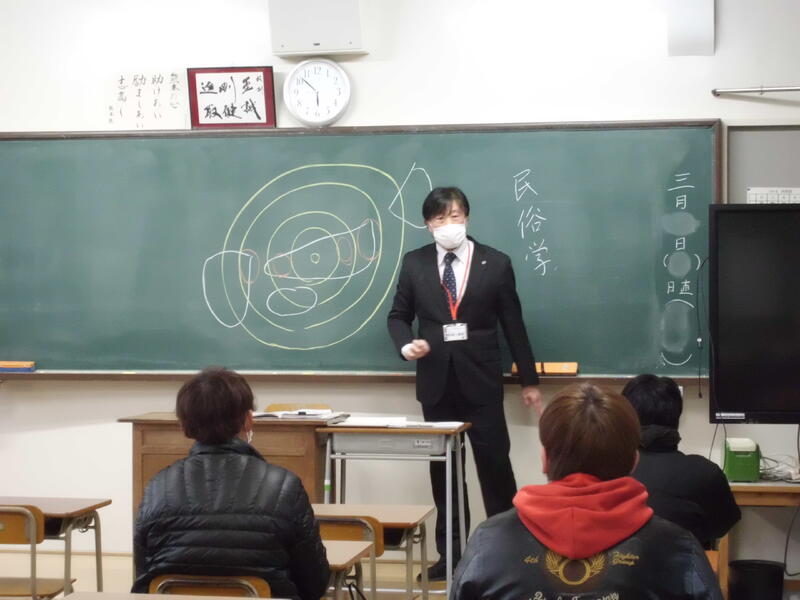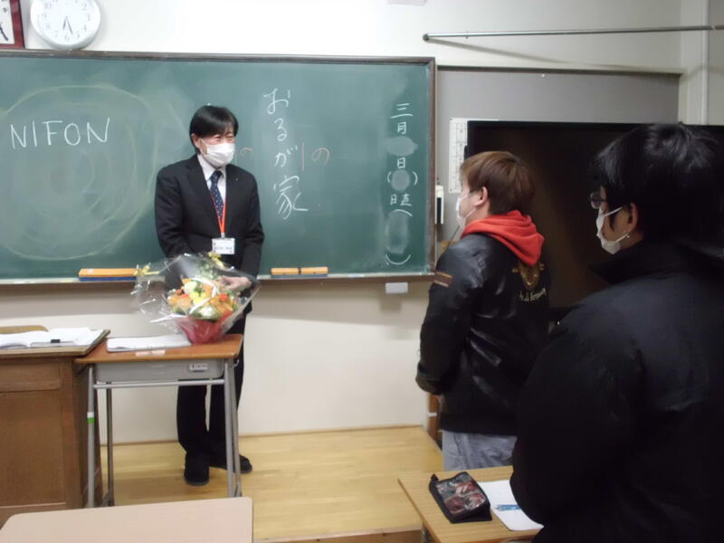 3月9日、今年度で退職される西澤校長先生の最後の授業が、定時制の3年生のクラスで行われました。「方言」についての授業で、方言の全国的な散らばり方や歴史的背景などを分かりやすく説明されました。私たちが知らないことばかりでとても参考になりました。授業の最後には、生徒を代表して緒方君から校長先生に花が贈られました。校長先生、退職後は健康に留意してお過ごしください。お疲れ様でした。