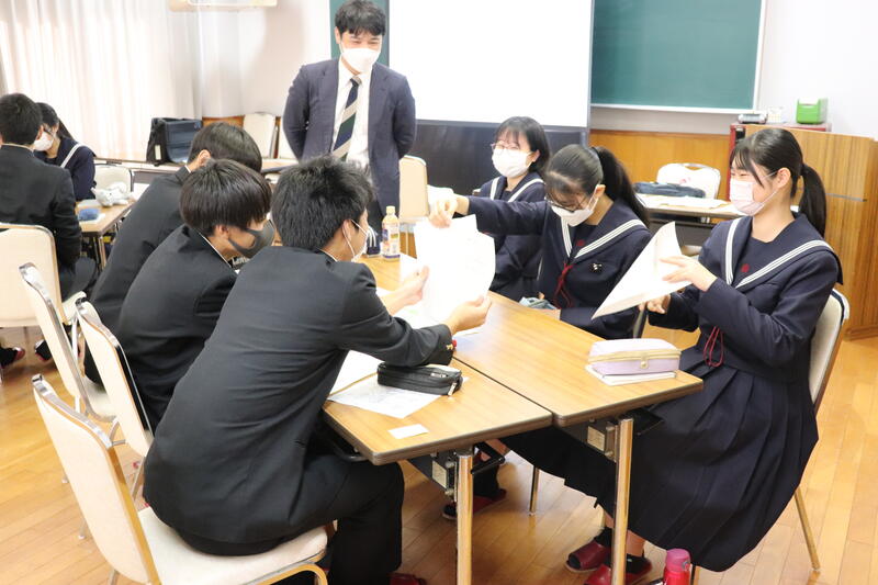 11月14日(月)本校セミナーハウスにて、「対話型自治体経営シュミレーションゲームSIMULATION熊本2030」を実施しました!講師として、熊本県職員で、現在東京大学大学院で学びながら東京大学先端科学技術研究センターで勤務もされている和田大志様をお招きし、1年生37名がゲームを体験しました。ゲームの概要は、自分たちで名前を付けた架空の自治体の幹部となり、人口減少や社会保障費の拡大といった課題を抱えながら、チーム内の対話をとおして、目の前に迫る難問に対する最適解(納得解)を導き出すというもので、いろいろな思考を必要とするゲームでした。参加した生徒たちは悶々と悩みながらも、粘り強く対話を続け、講師の和田様や教職員、市役所の方々からの厳しい査定にもめげず、楽しく頑張りぬきました。常に笑いが絶えず、盛り上がった研修は、将来こうなりたい(こうしたい)というビジョンを明確に持ちながら目の前の課題に立ち向かうという、思考のアプローチを体験する絶好の学びの機会ともなりました。最後には、和田様からリーダー像についてのお話もあり、真剣なまなざしで話を聞く生徒たちの横顔に将来のリーダーとしての頼もしさを感じました。今後様々な場面でこの経験は生きてくるものと確信します。講師の和田様、参加してくださった先生方、玉名市の方々、そして参加してくれた生徒の皆さん、まことにありがとうございました!