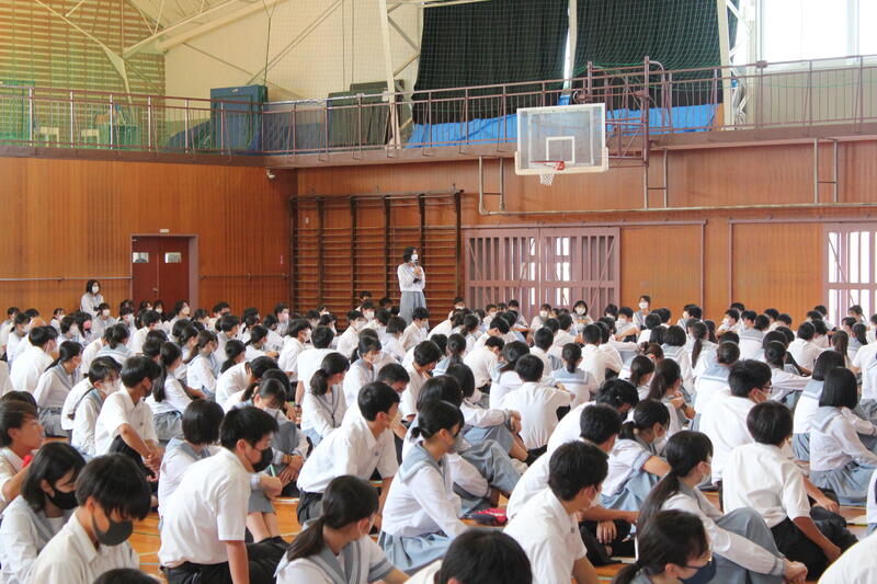 9月28日(水)に、高校1年生・附属中学校全生徒を対象に、ユニクロが取り組んでいる上記のプロジェクトの講演会を行いました。これは、各家庭に眠っている使わなくなった子ども服を集めて発展途上国へ送る取り組みです。困っている子どもたちへの支援になるだけでなく、資源を大切にするというSDGsの取り組みでもあります。