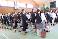 本日は、2週間の総体前練習の最終日でした。練習終了後に、推戴式が体育館で行われました。今年は、剣道・卓球・バドミントンの種目に出場します。選手以外の生徒たちも各会場で応援します。選手のみなさん、頑張って下さい!
