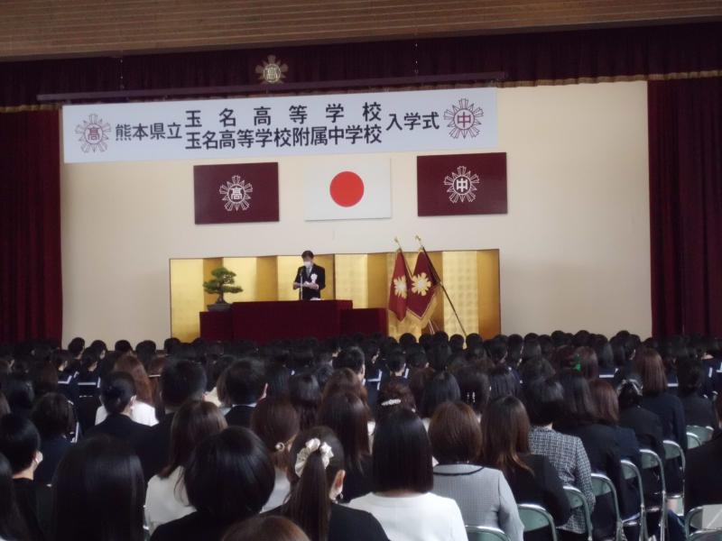 令和2年度玉名高校・附属中学校の入学式が行われました。毎年、入学式・卒業式は全日制・定時制・附属中の合同で行われています。今年は、コロナウィルス感染症対策ということで、新入生の皆さんと保護者の皆様だけをお迎えて、私たち教職員と共に、新たな門出を祝いました。