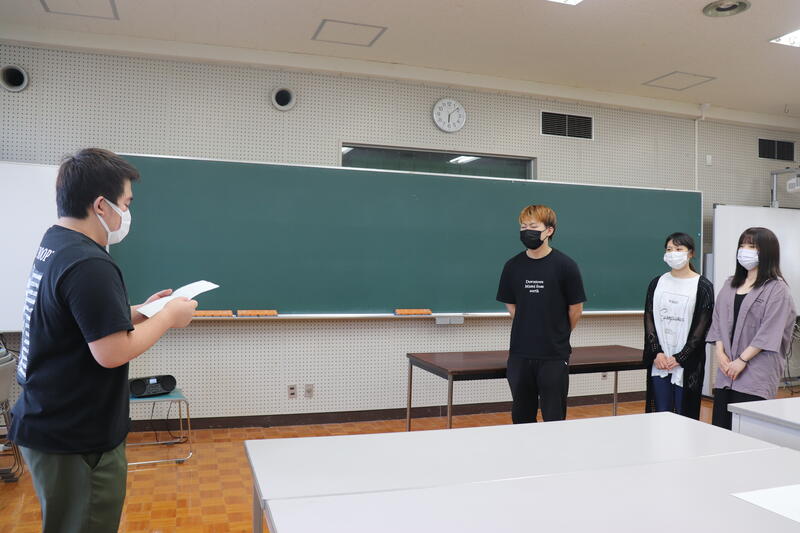 本日は、練習後に推戴式および事前指導が行われました。選手紹介の後、教頭先生からの激励の言葉を頂き、選手を代表して4年次生の井上さんが選手宣誓を行いました。大きな拍手に包まれた選手たちの笑顔が印象的でした。これまでの練習の成果を発揮して頑張ってください!