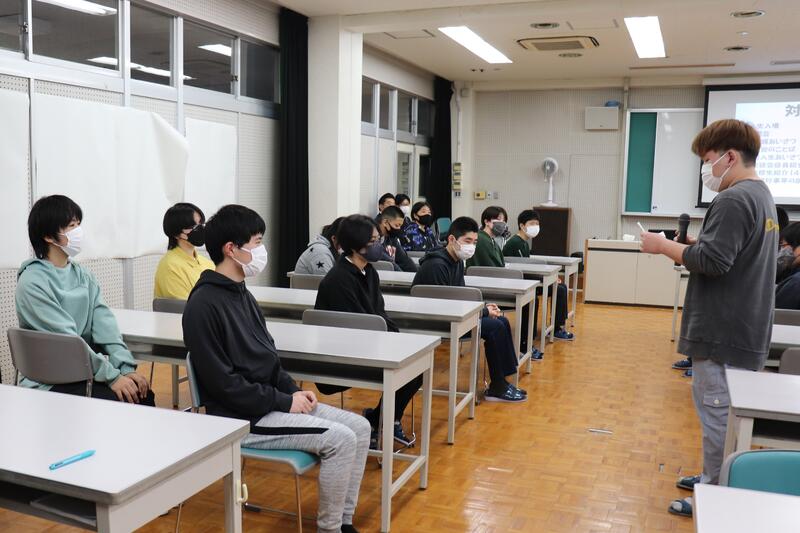 1年生は、外部講師の先生から部落差別についての講話を、2年生と3年生は合同で、模擬面接や不適切発言に対する返答例など、また4年生は、統一応募用紙を用いてどのような質問が差別につながるのかを模擬面接を通じて学習しました。