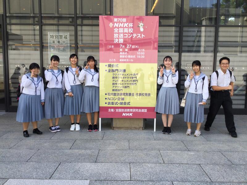 7月24日~27日の4日間、東京の国立オリンピック記念青少年総合センター・NHKホールで行われた第70回NHK杯全国高校放送コンテストに参加してきました。本校はアナウンス部門(3年原田さん)・ラジオドキュメント部門・テレビドキュメント部門の3部門に県代表として参加しました。惜しくも勝ち上がることはできませんでしたが、昨年に続き3部門で全国大会に出場することができ、県内はもちろん全国でも強豪校であると認知してもらえる立場になりました。
