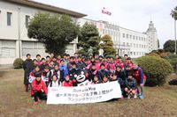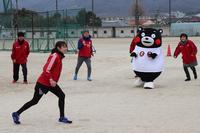 2月16日(土)の午後、第一生命グループ女子陸上部OGの松見早希子さんが指導する中学生を対象としたランニング教室が、本校グラウンドで開催されました。今年度は、金栗四三氏ゆかりの玉名地域での開催で、玉名高校附属中学校を含む4中学校の陸上部員が参加しました。お手伝いとして、玉名高校陸上部部員も参加し、トレーニング方法等をともに学びました。サプライズで、金栗Tシャツと足袋姿のくまモンが参加してくれました。