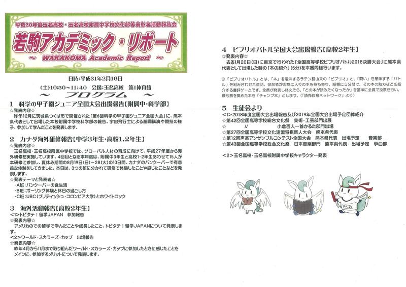 玉名高校・玉名高校附属中学校文化部等における研究や日頃の学習内容を、生徒・保護者・地域へ向けて発信することにより、本校生の参加意欲を喚起するとともに、本校の教育活動に対し、広く理解を深めていただく契機として開催しました。昨年にもまして、素晴らしいステージ発表でした。