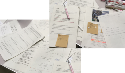 (トピックに関して集めた資料と議論の際のメモ書きなどの一部)