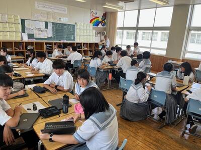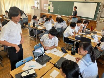9月3日には夏休みに考えてきたアイデアをクラスで発表し、学級代表者を決定しました。各クラス2~3名の代表者が選出され、16名となりました。9月17日に校内発表会を行います。当日は東京のエナジード株式会社から大澤様が来校され、活動や発表の様子を見て助言をいただく予定です。