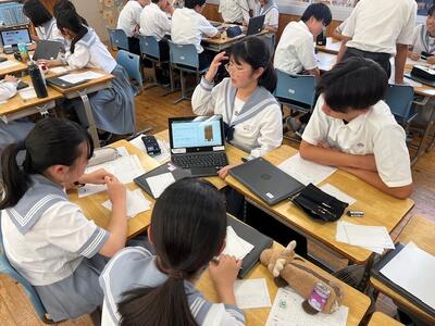 本校では総合的な学習の時間に「ENAGEED」という教材に取り組んでいます。現在、12月に年に一回開催されるENAGEED SUMMITの準備をしています。ENAGEED SUMMITは全国の中高生を対象としたオンラインプレゼンテーション大会です。この大会では、生徒一人ひとりが、日常生活の中で気づいた違和感や「もっとこうだったらいいのに」という問題意識から、社会課題を解決するためのアイデアやアクションを発表します。
