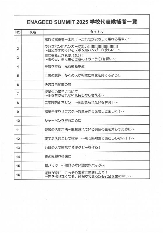 【中】ENAGEED SUMMIT2025校内選考会エントリー発表