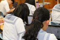 学校薬剤師の先生から『薬物の危険性や薬の使い方、断る方法や自律が大切である事、感染症予防』について分かりやすくお話していただきました。生徒の感想で「薬物の乱用は代償が大きく、身体への大きなダメージや依存性がある事がわかりました。」「薬物がダメなのも知っているし、しないと思うけれど、悩んでいる時に誘われて使うという事が心に残りました。自分を律します。」「薬物は『はっきりと断る。その場を離れる。』を意識していきたいです。」「正しい知識をつけて、自分を律する自律が大事だと思いました。」等があがっていました。悩みや不安を誰もが抱えていますが、自分の明るい未来のために『自律』を大切にしてほしいと思います。