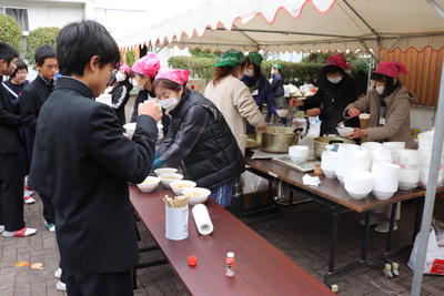 今年は「いだてん記念大会」(西澤校長先生命名)と銘打ち、同窓会の先輩方や育友会からも駅伝形式での参加があり、まさに「オール玉高・玉高附中」の学校行事となりました。ゴール後は、育友会特製だご汁の振る舞いに加えて、本校卒業生のミュージシャン関島秀樹さんのミニコンサートで大いに盛り上がり、楽しい小岱山一周大会でした。育友会、同窓会の皆さん、どうもありがとうございました。