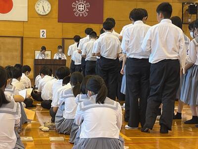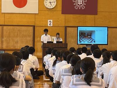 7月15日火曜日、1学期最後の生徒朝会が行われました。