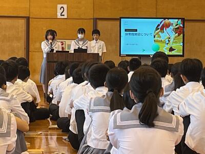 生徒会執行部からは、以前から意見が上がっていた昼休みの体育館開放についての話がありました。9月からルールを決めて取り組んでいくそうです。怪我がないように、ストレスを発散させて、午後からの授業に取り組んでくれることでしょう。