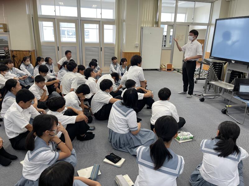途中、何回か近くの生徒同士で感想や考えを共有をする時間があり、和気あいあいとした雰囲気で学年の中の良さを感じました。例えば、こんなことを話し合いました。