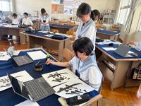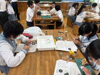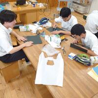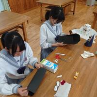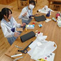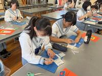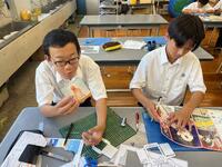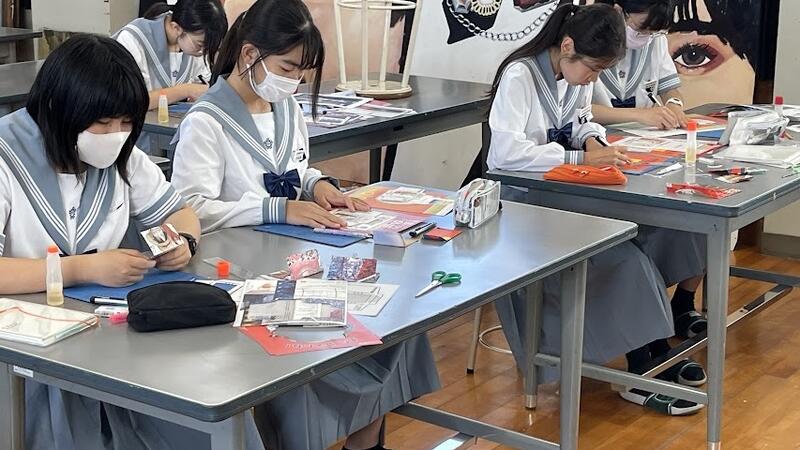 7月24日、附属中学校で実施されたサマーペガサスで、期間が終わった美術展のチラシを活用した封筒づくりを行いました。各々好きな絵や写真があるチラシを選び、そのデザインが生かされるよう封筒の型に合わせて切り取り、糊付けしました。完成した封筒は熊本県立美術館に寄贈させていただきました。子ども美術館やイベントで活用していただけるようです。
