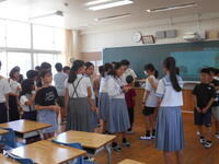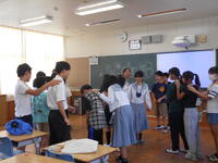 当日は玉附生77名のオープンスクールボランティアの生徒たちが案内・誘導・体験授業や生徒交流会のサポートを行ってくれました。暑い中での実施となりましたが、生徒たちは、小学生の皆さんと保護者の方を丁寧に案内したり、挨拶したり、おもてなし精神を大いに発揮してくれました。