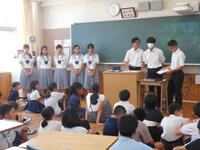 最後に2年B組と人権ボランティアの生徒が中心となって「玉附いじめゼロ宣言」の唱和を行いました。