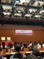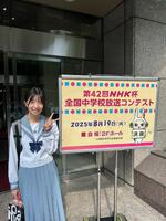 放送部3年生の野上さんが、8月19日に東京の千代田放送会館で開催された第42回NHK杯全国中学校放送コンテスト全国大会に出場し、見事入選を果たしました。野上さんは、音楽部で活躍している同級生の取り組みや思いを紹介する原稿を作って発表し、熊本県大会ではアナウンス部門の最優秀賞に選ばれました。今回の全国大会は、アナウンス部門の応募総数226作品の中から選ばれた上位30名だけが出場できるもので、野上さんの作品は東京の会場とオンライン上でたくさんの人に視聴されました。