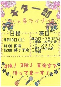 4月13日土曜日14:00から、本校音楽室にてギター部によるライブを開催しました。