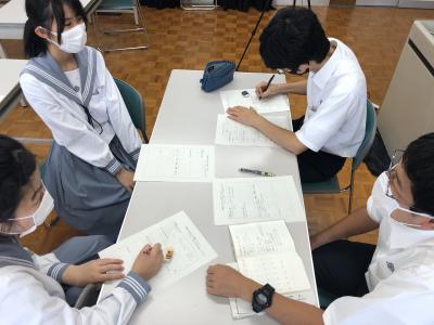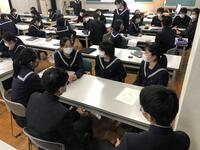 感染症対策のため、中学生と高校生の時間をずらして2部制で行いました。