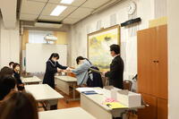 (PC)や大型提示装置、無線LAN等を活用し、少人数の教室で説明を聞いていただきました。本日の説明会が中学