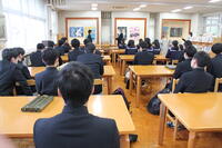 新型コロナウイルス感染症の急激な広がりに対応するため、生徒は、2学期終業式同様、西澤校長の式辞をオンラインで視聴しました。その後、3年生は今週末に行われる大学入学共通テストに向けて、説明・激励会が行われました。