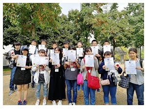 通常は各教室で修了証をいただくのですが、今回は人数が多いため、近くの公園で合同での授与式でした。生徒は、同じクラスだった方達と仲良くなり、写真を撮ったり連絡先を交換したりと5日間で交流を深めたようです。