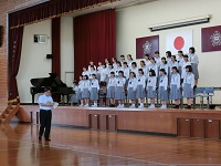 最後は生徒会長の谷口君の指揮のもと、全校生徒・職員で校歌斉唱をして式を閉じました。