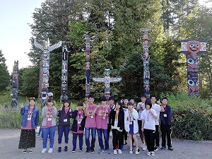最終日の本日は、朝に集合した後、スタンレーパークと空港横にあるアウトレットモールへ寄りました。スタンレーパークのトーテムポール前で記念写真を撮りました。