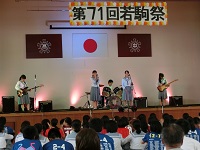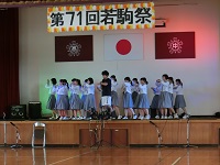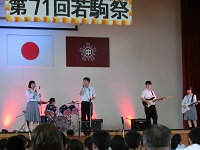 若駒祭は8時30分すぎの開祭式からスタートし、生徒会による各企画紹介、音楽部の合唱、器楽部の演奏、附属中の英語劇と、順調に進みました。