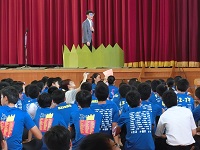 「先週、皆さんの小学校や中学校でのボランティア活動について、お礼の電話が次々かかってきました。嬉しいですね。もちろん、お礼を言っていただく、いただかないに関係なく、善行、善い行いというのは素晴らしいことです。「善い」と言いましたが、「善い」という意識がないまま、他の人から見れば、善い行いをしている人もたくさんいると思います。