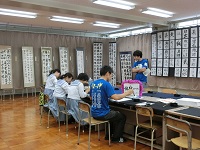 同窓会のお部屋では、将棋や囲碁の対戦。また、書道室では、書道部の作品展示と書道体験が行われていました。
