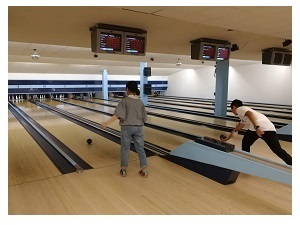 レベル分けテストを受けた後、早めに来てくれたバディたちとランチを食べて、その後、5ピンボーリングへ。ボーリングは日本のとは違いましたが、生徒はバディたちと英語で会話をしながら楽しんでいました。