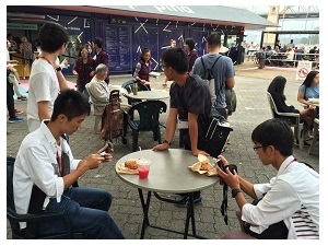 通りすがりの外国人へ声をかけて撮影してもらったり、お題に書かれている物を探したりとコミュニケーションと体を使うアクティビティでした。