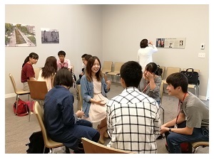 午後は、ブリティッシュコロンビア大学に移動して、4人の学生に案内してもらってのキャンパスツアー、その後、教室へ移動して、グループごとに輪になって英語でいろいろな質問をして交流を深めました。