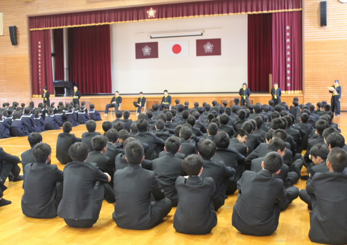 そのお言葉に対して、玉名高校新入生を代表して福永篤史くんが、附属中学校新入生を代表して松村優斗くんが「『至誠』『剛健』『進取』の精神に基づき、自ら考え行動することに精進して参ります」と応えました。