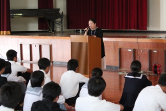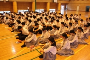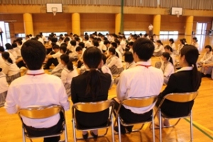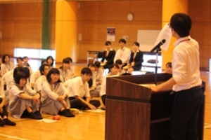 4月10日(火)、対面式が行われました。はじめに月井校長先生より、「在校生と新入生が色々な行事を通して、長い歴史や伝統を引き継いでいって欲しい。」とお話がありました。