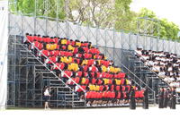 今日は小雨のため、急遽室内での応援練習となりました。今日から5月。本番まであと少しです。各団、人文字の演技を最初から最後まで通して練習するなど、着々と完成度を高めているようです。
