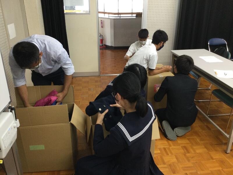 9月に実施した講演会から行われていた”届けよう 服のチカラ”プロジェクトの結果、497着の子ども服が集まりました。服を提供して頂いた皆さん、服の回収や梱包に協力してくれたボランティア委員や附属中生徒会、人権ボランティア委員の皆さん、大変お世話になりました。皆さんの行為が、遠いどこかの国の子どもたちの笑顔を作ってくれることと思います。御協力ありがとうございました!