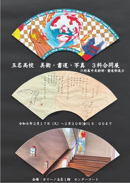 熊本県立玉名高等学校美術・書道・写真三科合同展を下記の要領で実施します。