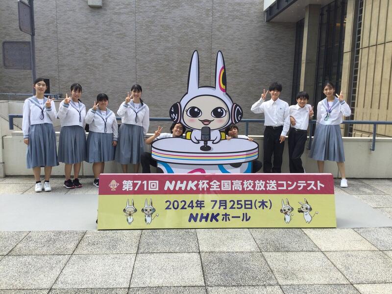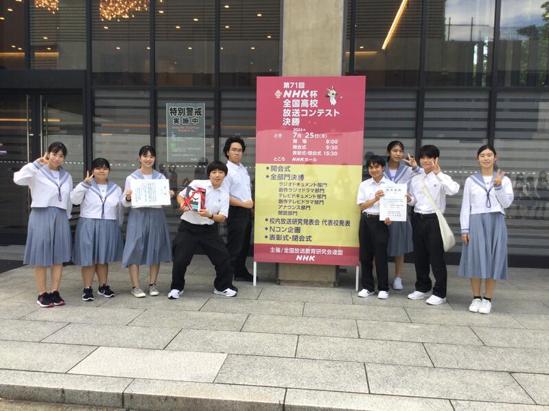 7月22日(月)~25日(木)に国立オリンピック青少年総合センター・NHKホール(東京)にて第71回NHK杯全国高校放送コンテストが行われ、本校はラジオドキュメント・テレビドキュメント・創作ラジオドラマの3部門に計9名で参加しました。このうち、テレビドキュメント部門・創作ラジオドラマ部門の2部門が準決勝に進出、テレビドキュメント部門が入選、創作ラジオドラマ部門が制作奨励賞を頂きました。熊本県の高校では唯一本校のみが番組部門で準決勝まで勝ちあげることができました。
