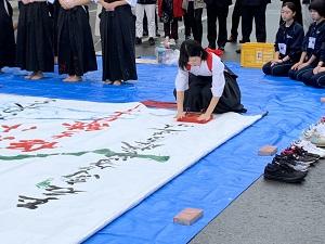 南関町にあるエコアくまもとで行われた「菊池川の日スペシャルinなんかん」で、書道パフォーマンスを披露しました。参加者の皆さまに間近で観覧いただき、大変うれしかったです。生徒達にとってもよい思い出になりました。このような機会を与えていただき、ありがとうございました。