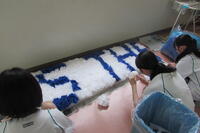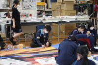 人数の都合で人文字に参加しない生徒は、大看板の手伝いや櫓の装飾に携わっています。今日は装飾に使う紙花の作成や、貼り付け作業を行っていました。様々なところで、体育祭の成功に向けて生徒全員がそれぞれの役割を果たしています!