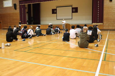本日の3・4時限に地震発生による火災発生で安全な避難方法を学びました。また消火器の設置場所の確認や取り扱いを全員共有できました。その後、グループ旗の完成披露会でグループの名称、旗の作成コンセプトを発表しました。