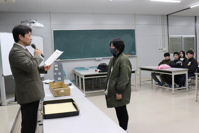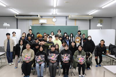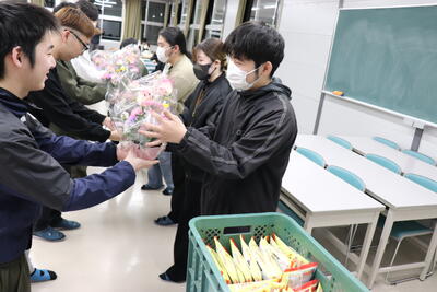 本日の3・4時間目に予餞会を実施しました。4年生(卒業生)と最後の交流会です。最初に、全員で定時制に関するクイズ大会をしました。難易度は高めな問題でしたが、楽しめていたと思います。その後、卒業予定の4年生から在校生に挨拶をしたあと、花束・記念品の贈呈がありました。最後に、表彰式で高体連表彰、定通振興会表彰がありました。賞状を受け取った生徒は努力が実ったことを感じていました。企画をしてくれた生徒会の皆さんお疲れさまでした。卒業式は3月1日(日)です。